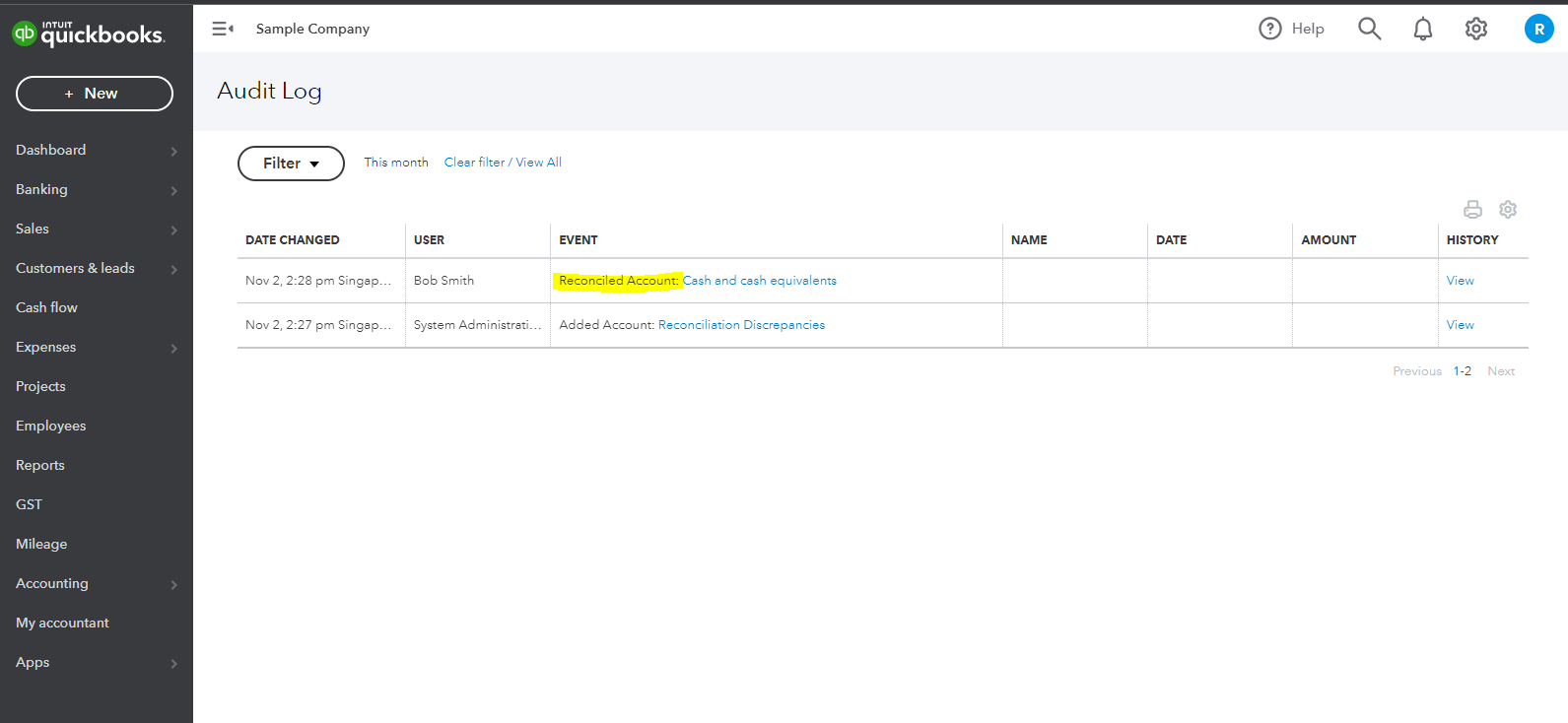Once you're in the private browser, you can check the Audit Log report to see if it recorded the reconciliation. This report shows the history of events that users did within the company file. It will also tell you if the reconciliation was processed successfully or not. Here are the steps to check the Audit Log report: