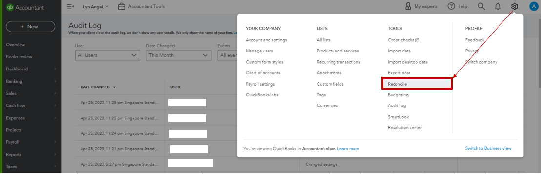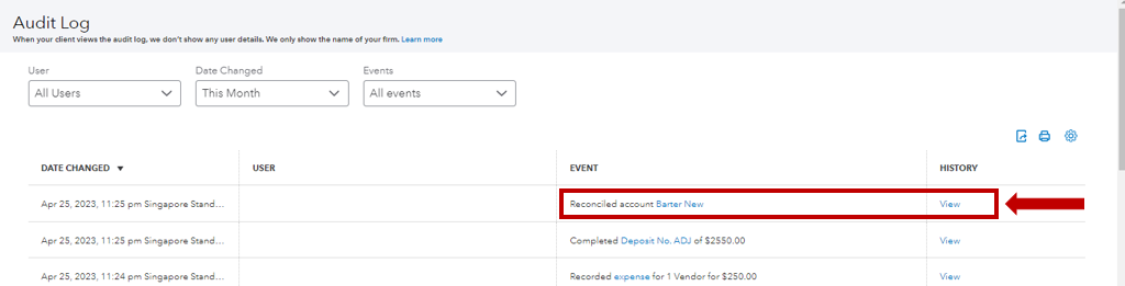 Once you track your expenses in QuickBooks Online (QBO), the system won't reconcile them immediately unless you've done so through the Reconcile window. In your case, let's try checking your Audit log report to review the activities in your account and see possible reconciliations made on your expenses.
