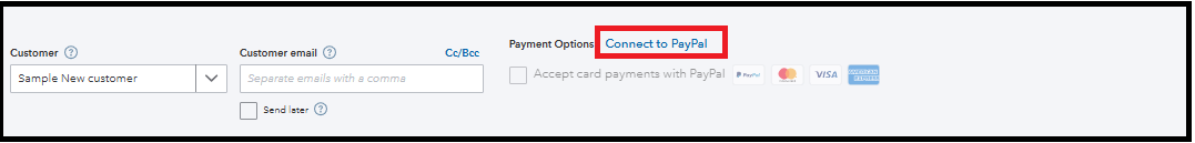 To ensure the Accept Card Payments with PayPal option is automatically selected, you first need to set it up. You can do this through the Apps section or by clicking Connect to PayPal directly from the Invoice page.
