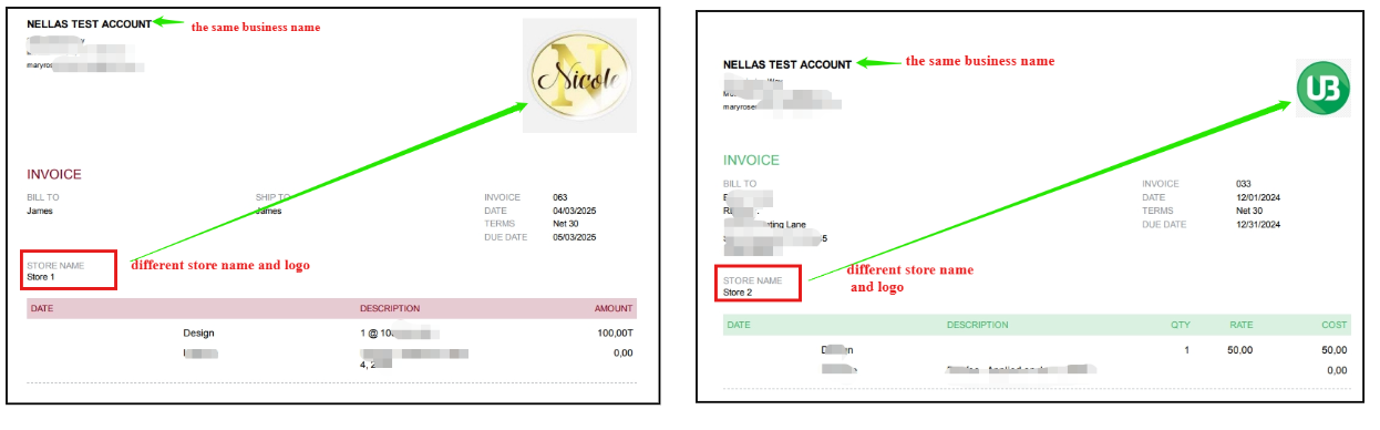 As a workaround for adding unique store names or other identifiers to your invoices, you can create a custom field within the invoice template. It can be labeled something like “Store Name,” and you can manually enter the appropriate name on each invoice. This way, your invoices can reflect the specific store or operation while maintaining the same overall business name in the settings.