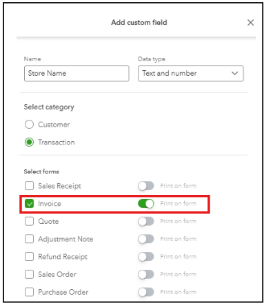 Once done, you can input the store name or other identifiers for each invoice, and it will appear on your form.