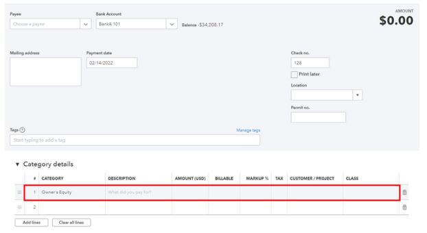 In QuickBooks Online you'll have to select a bank, credit card, or asset account type as the payment account where the funds are taken out to pay for the specific expense. This is the reason why you're unable to select it for an expense transaction. You can use the owner's contribution account for an expense under the Category details section only.