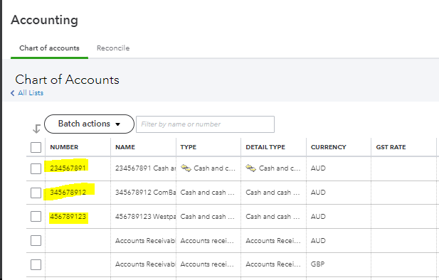 Use account numbers in your chart of accounts in QuickBooks Online.