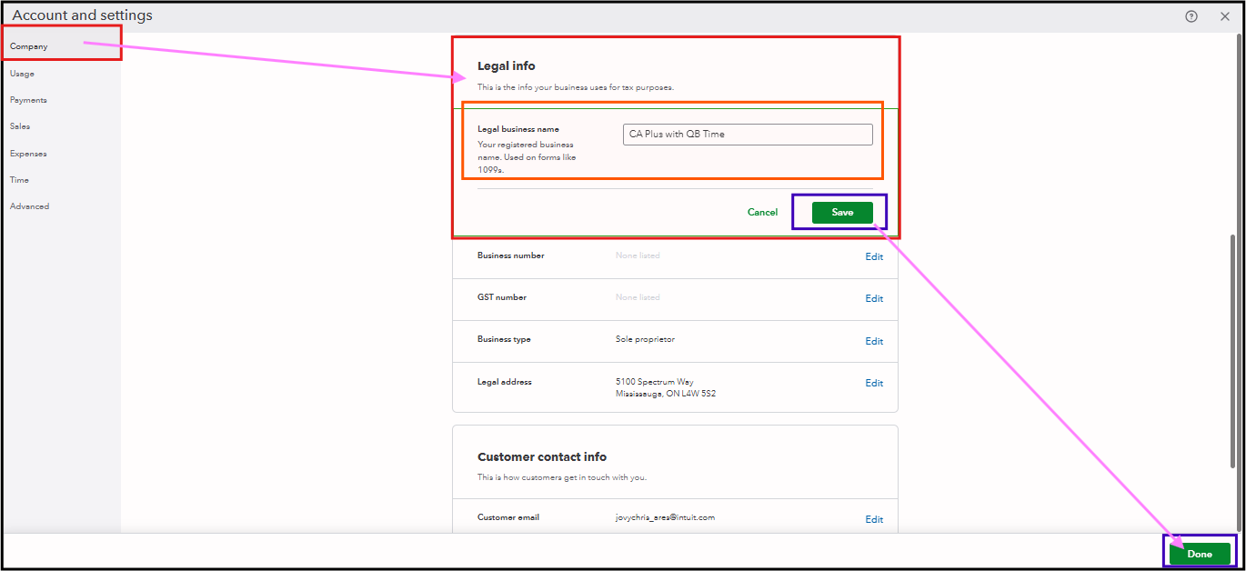 We can change your company's legal name by going to the Company tab within Accounts and Settings.