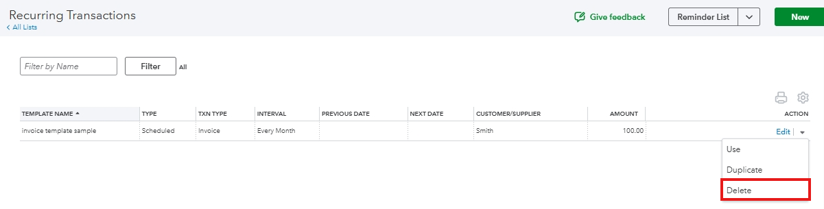 If you create recurring templates for invoices, bills, or journal entries set to Scheduled, the transactions will automatically generate on the specified date and interval. To disable this feature, follow the steps below: