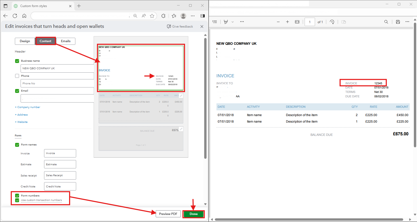 Thank you for specifying the device you're using and outlining your invoice concern, info2289. Let's review your default template to ensure the invoice number shows when previewed or emailed.