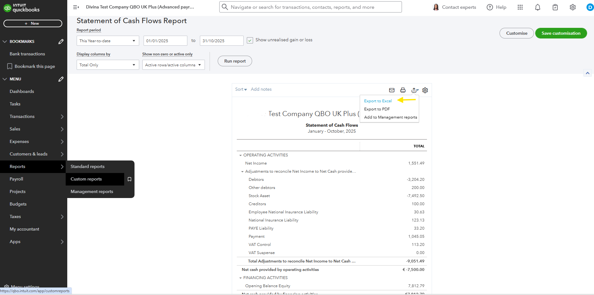 As an alternative, if you need your amended Statement of Cash Flows, you will have to export it directly from QuickBooks Online.