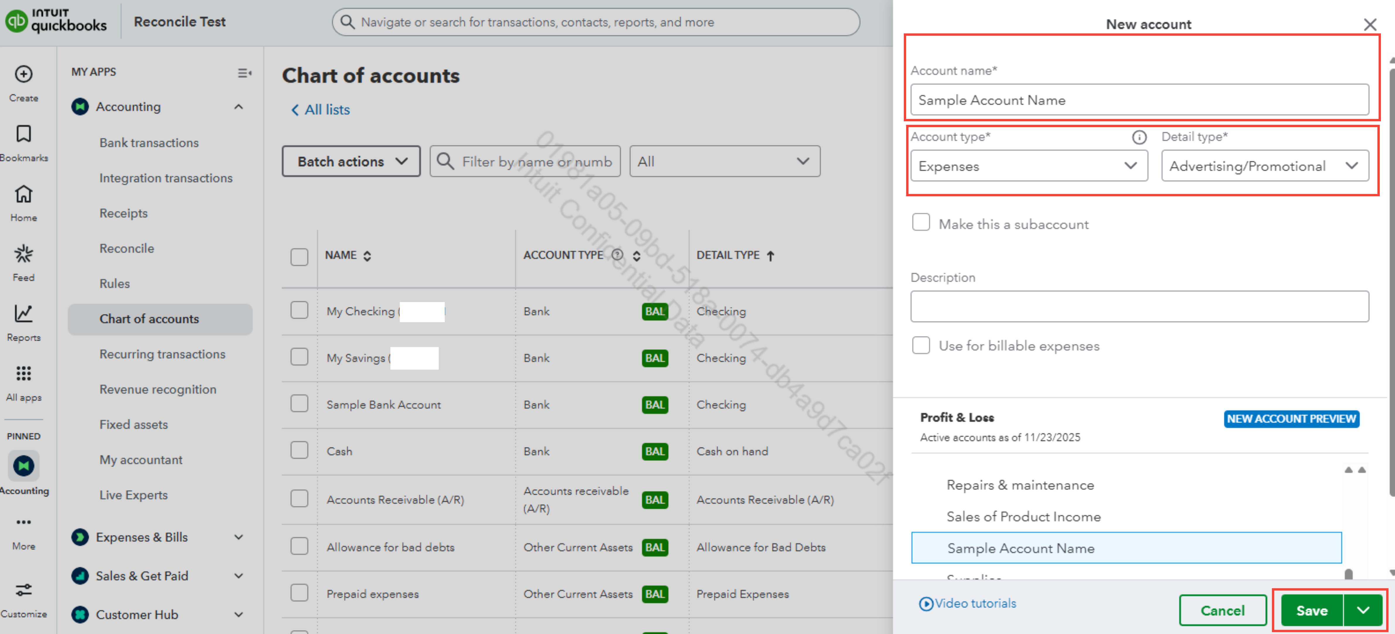 Once created, your new expense category account will appear in the Chart of Accounts account list. If you don’t see it right away, use the filter or search bar to find it quickly.