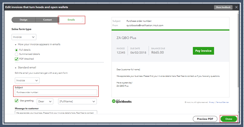 Beforehand, let's customise the invoice template to personalise the subject field. Here's how: