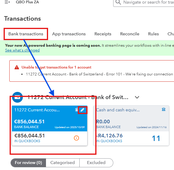 If you have changed something in your bank information, you also need to update it in QuickBooks to avoid an error in your bank feed. You can find the detailed step-by-step process by reading this article: Update your bank info in QuickBooks.