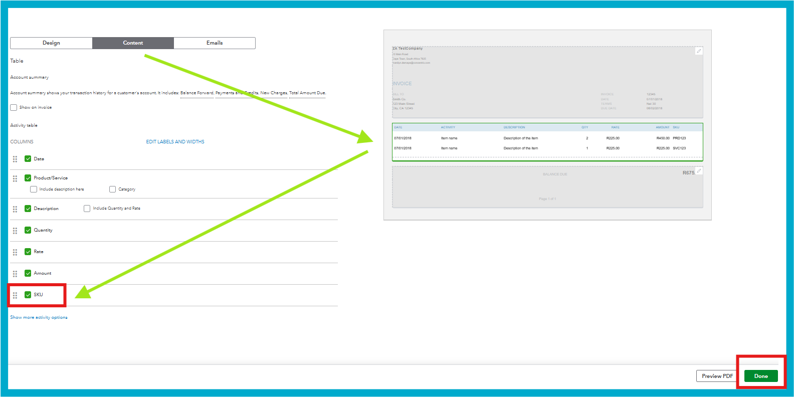 4. Check the SKU box and click Done.