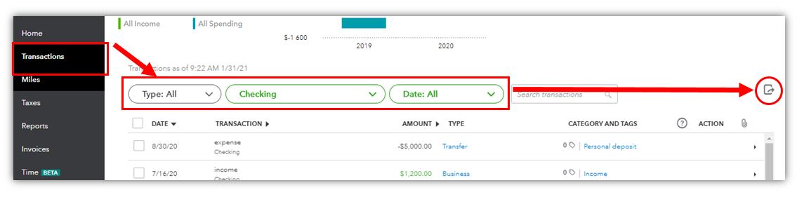You can export your bank transactions in QBSE by going to the Transactions tab. Here's how: