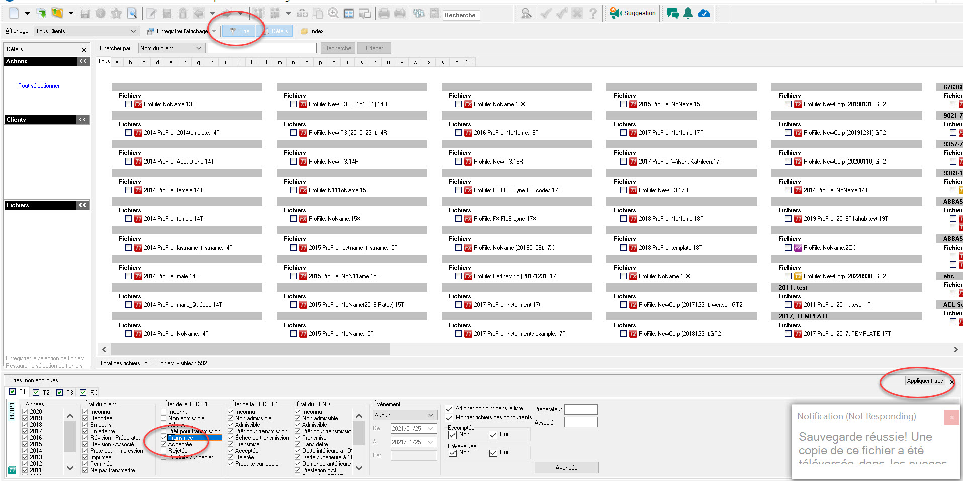 Oui, le plus simple est d'utiliser l'explorateur client et d'appliquer un filtre au bas....