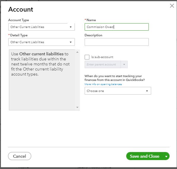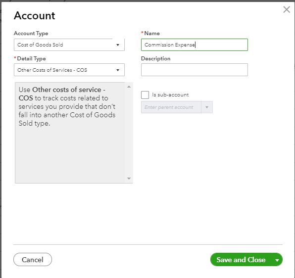 Then, create an Expense Account or Cost of Goods Sold Account to track the vendor expense. And, create an Expense Account or Cost of Goods Sold Account to track the vendor expense. NOTE: You’ll want this to be an Other Current Liability, and you’ll need one for each vendor to whom you pay commission.