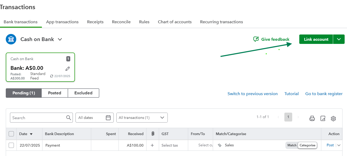 We can go to your Bank transactions page to connect your Commonwealth Bank (CBA), Golliwog.