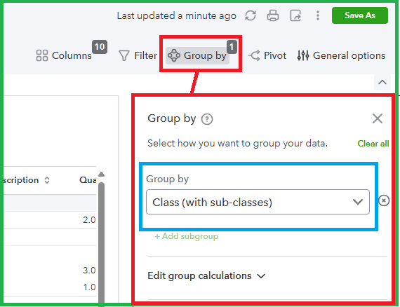 Please know that you'll need to set the report's Group by option to Class (with sub-classes) for the modern interface and Class for the classic interface. This way, the data will be displayed as the parent class (with its transactions), and under it are its sub-classes (and their transactions).