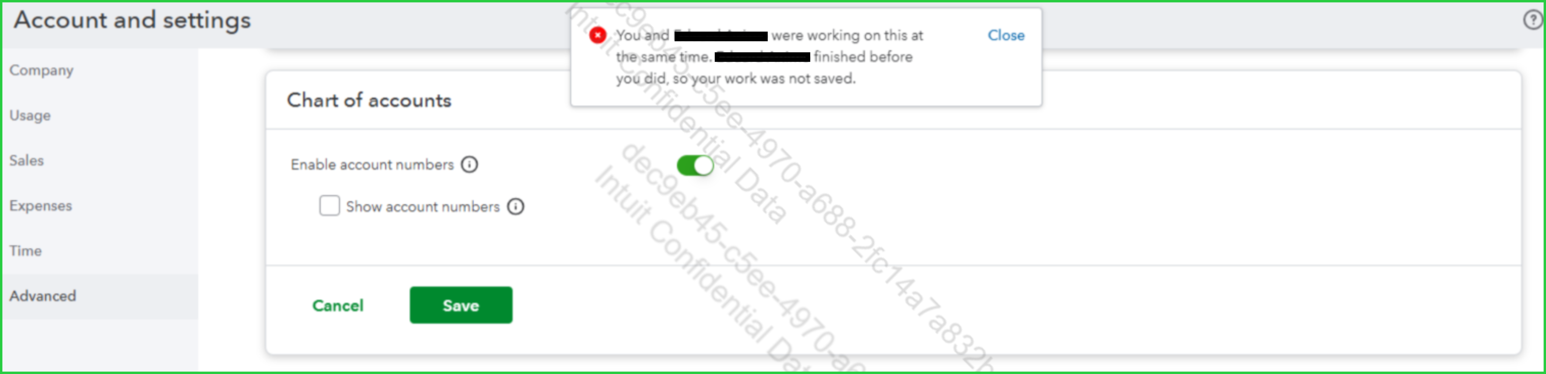 The error appears to happen when you work with multiple tabs for the same company file. I’ve seen it happen on my end too.