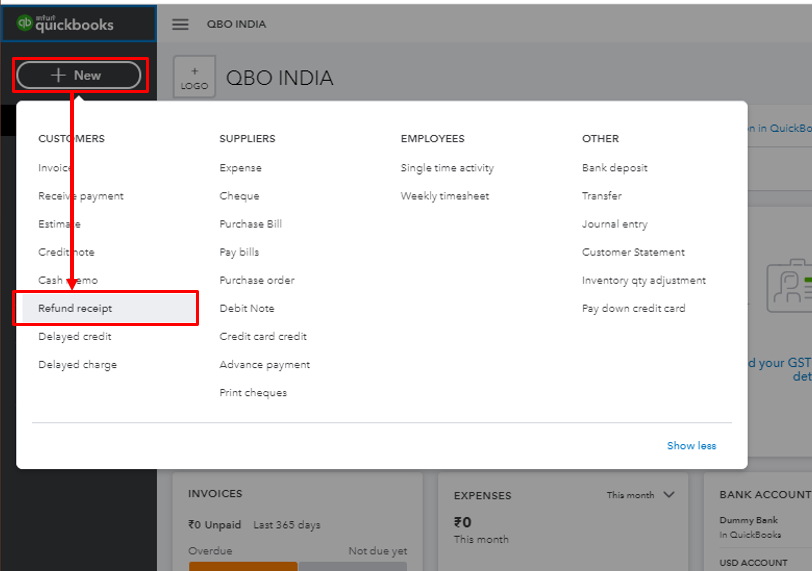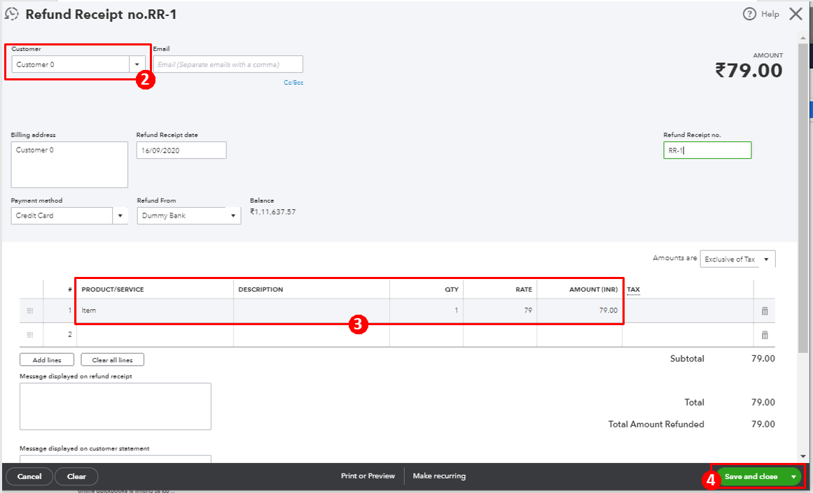 To record returned items in QuickBooks Online, you can create a refund receipt for this transaction.