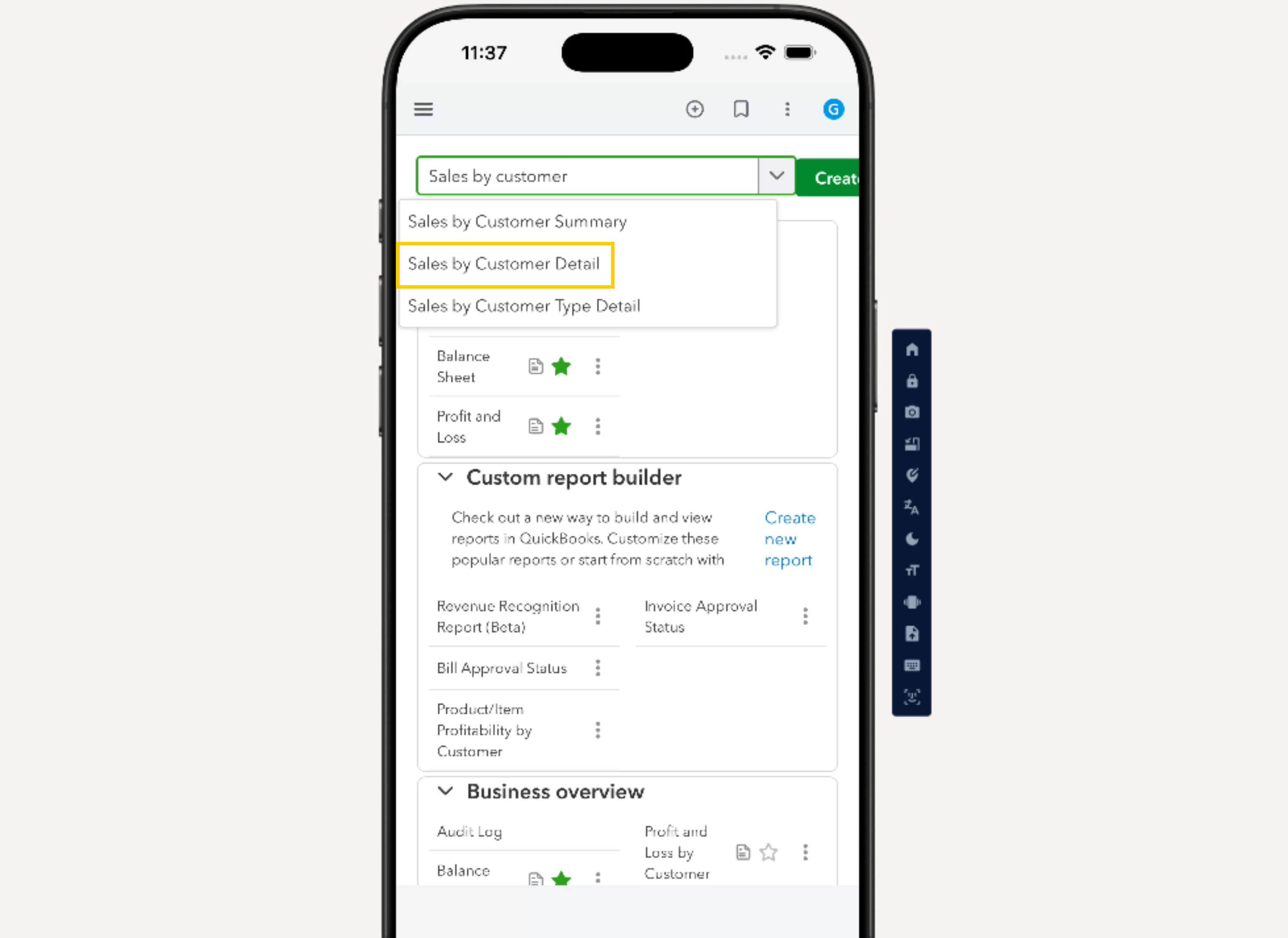 However, you can definitely get this detailed report on your phone by accessing the full QuickBooks Online site through your mobile browser.