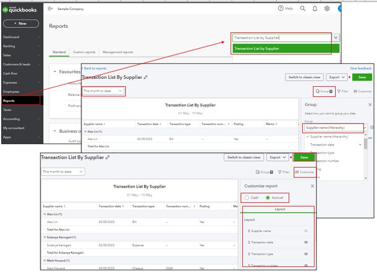 For now, we're unable to create supplier statements in QuickBooks Online. However, you can run the Transaction List by Supplier to show the total amounts and specific transactions you have with each supplier.